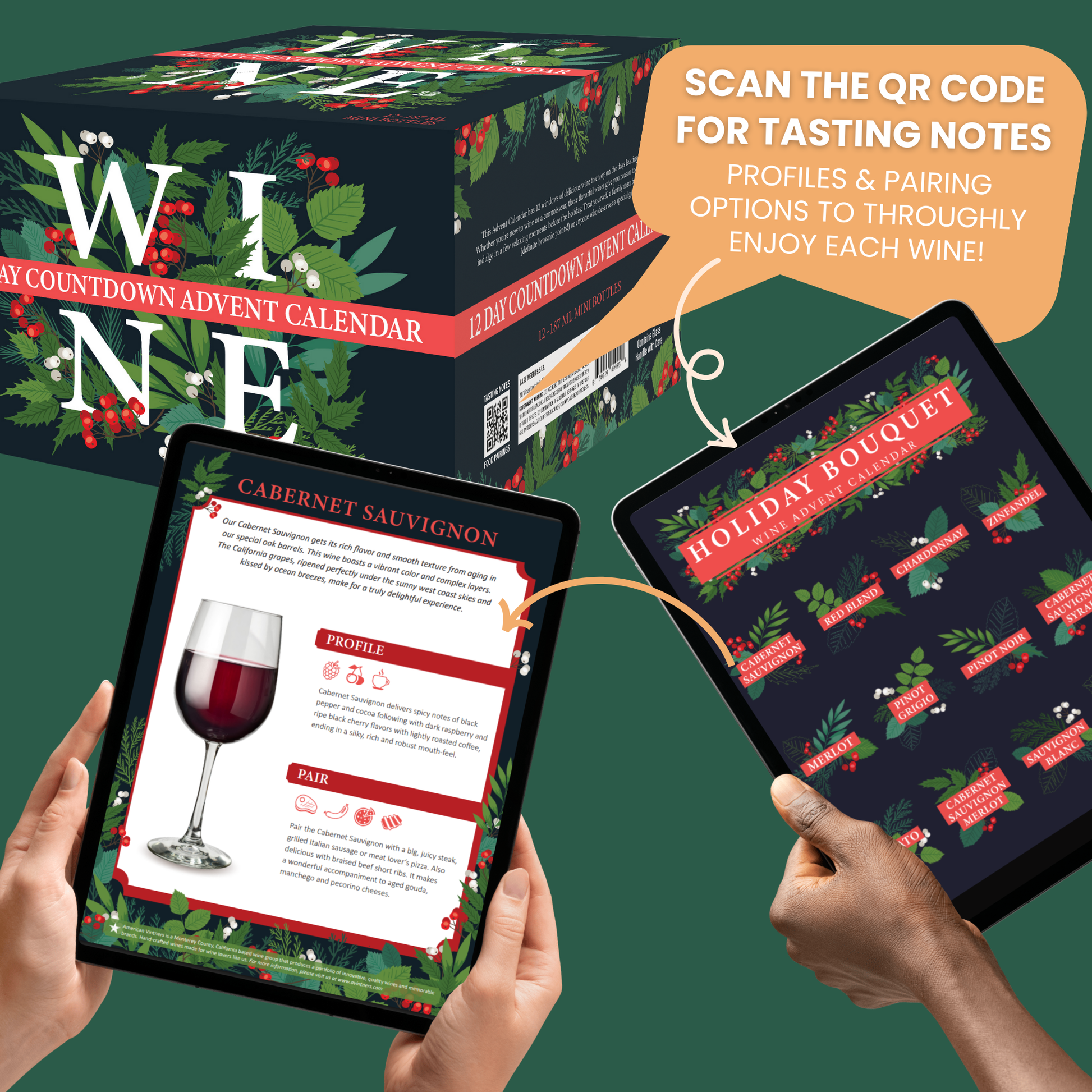 *QR Codes on the packages take you to Tasting Notes that include profiles, descriptions, and pairing options for each varietal making these Wine Advent Calendars the best gift for beginners and experienced wine lovers alike!